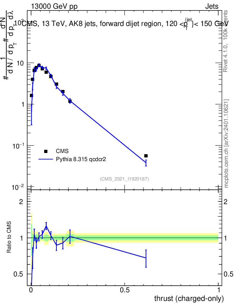 Lines: data, pythia8 8.315 qcdcr2 |