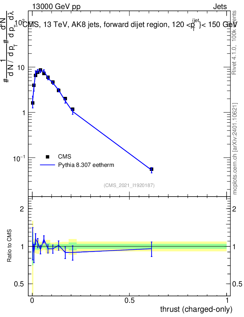 Lines: data, pythia8 8.307 eetherm |