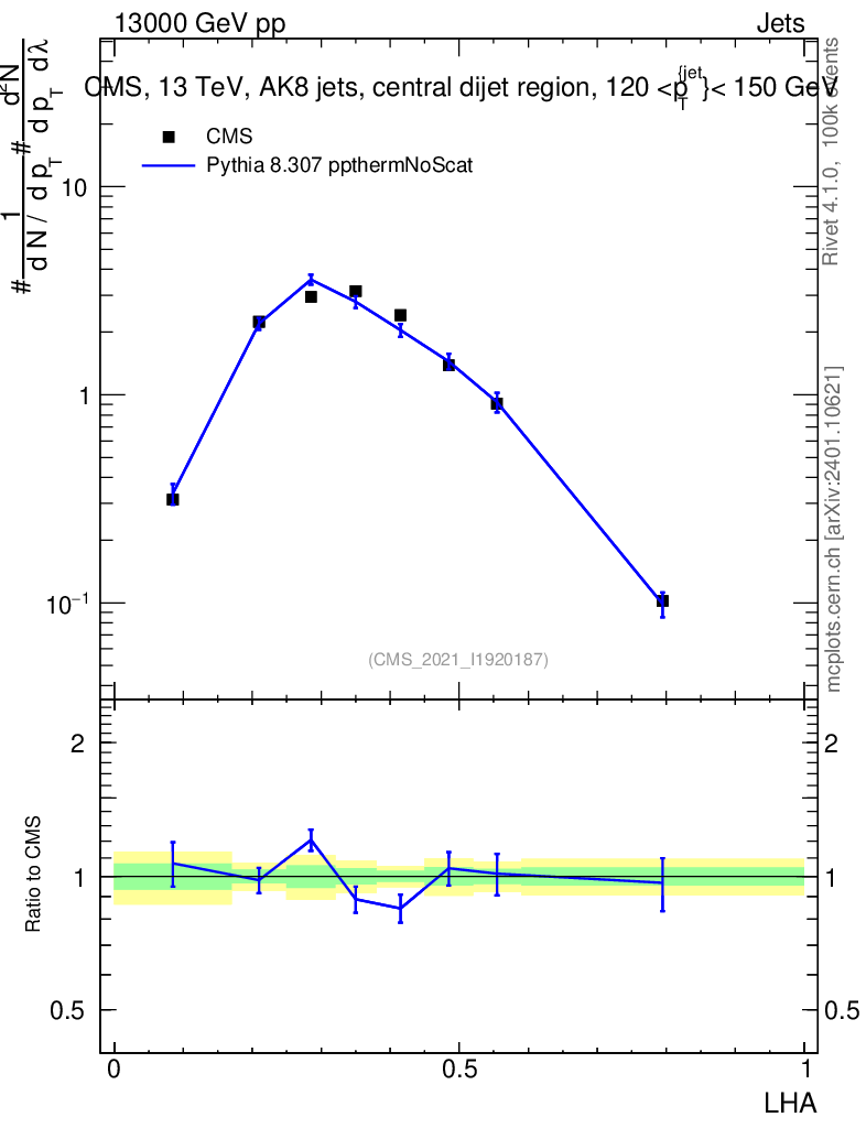 Lines: data, pythia8 8.307 ppthermNoScat |
