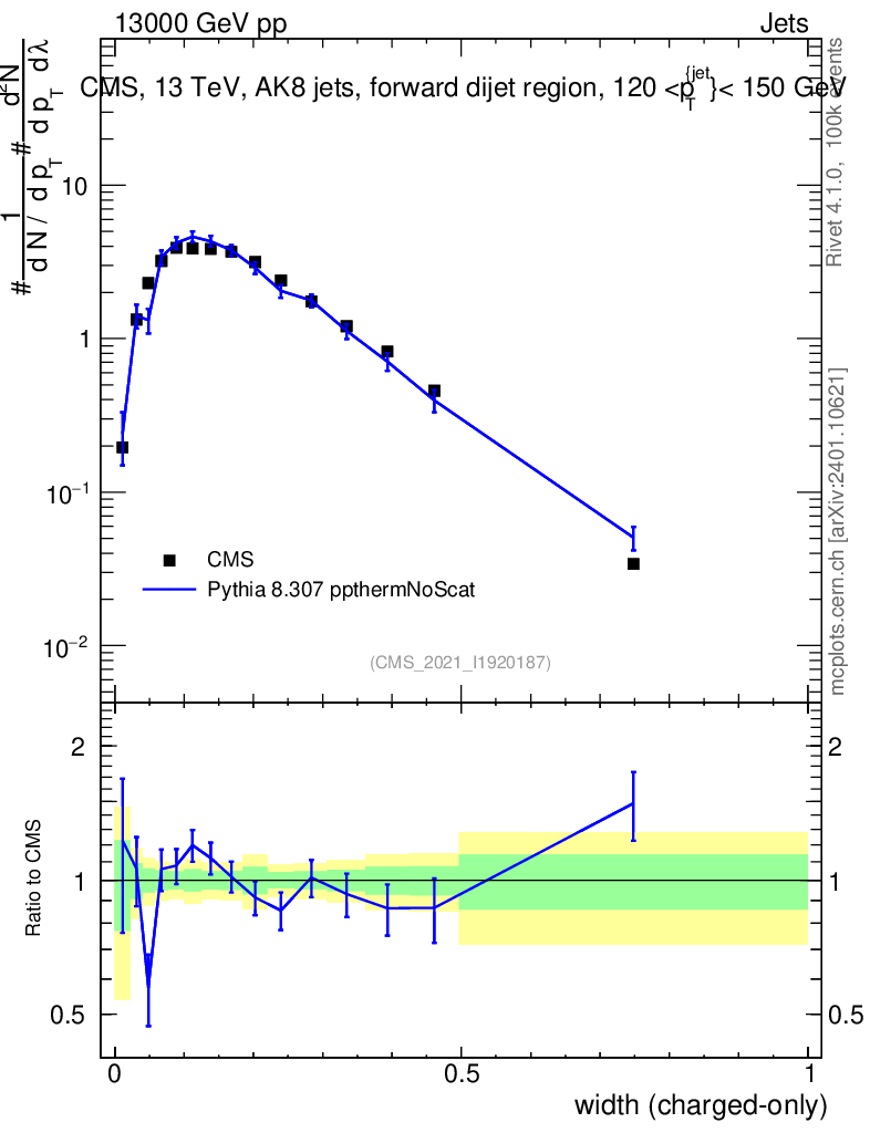 Lines: data, pythia8 8.307 ppthermNoScat |