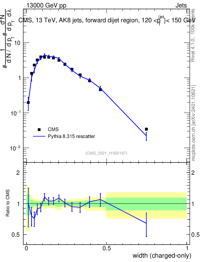 Lines: data, pythia8 8.315 rescatter |
