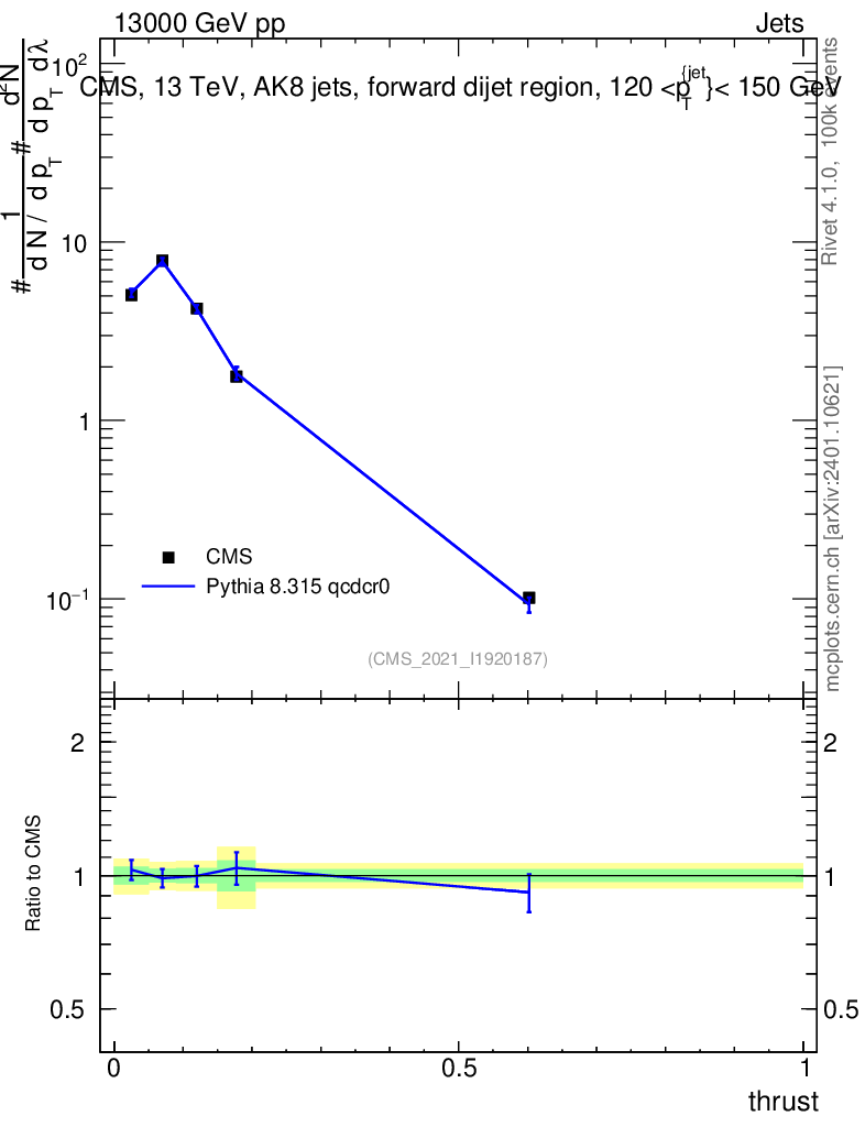 Lines: data, pythia8 8.315 qcdcr0 |