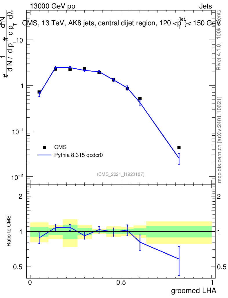Lines: data, pythia8 8.315 qcdcr0 |