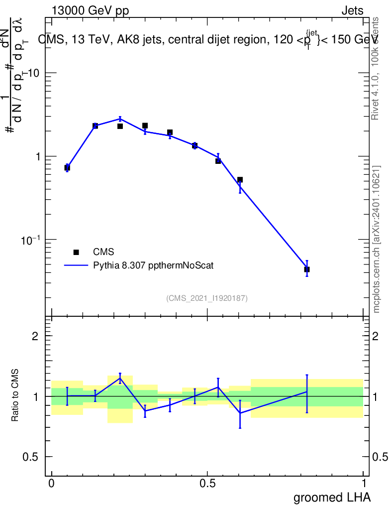 Lines: data, pythia8 8.307 ppthermNoScat |