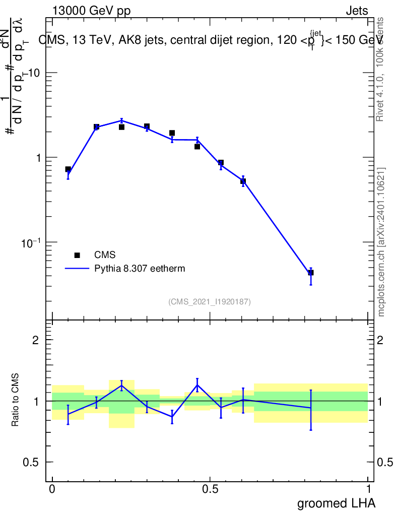 Lines: data, pythia8 8.307 eetherm |