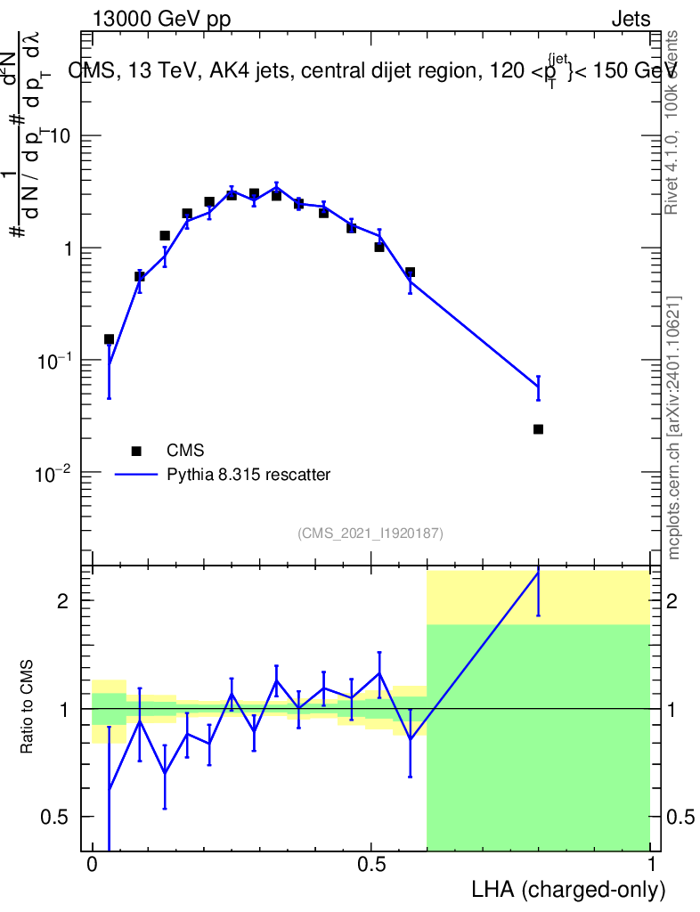Lines: data, pythia8 8.315 rescatter |