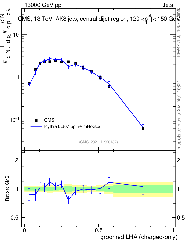 Lines: data, pythia8 8.307 ppthermNoScat |