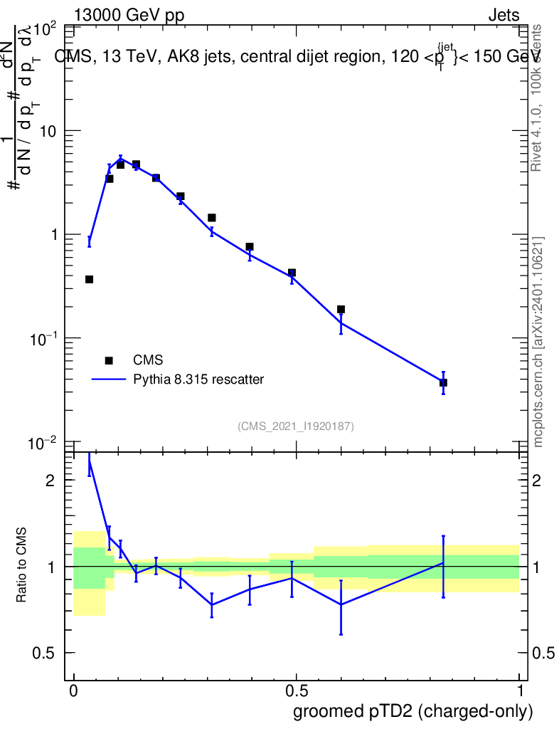 Lines: data, pythia8 8.315 rescatter |