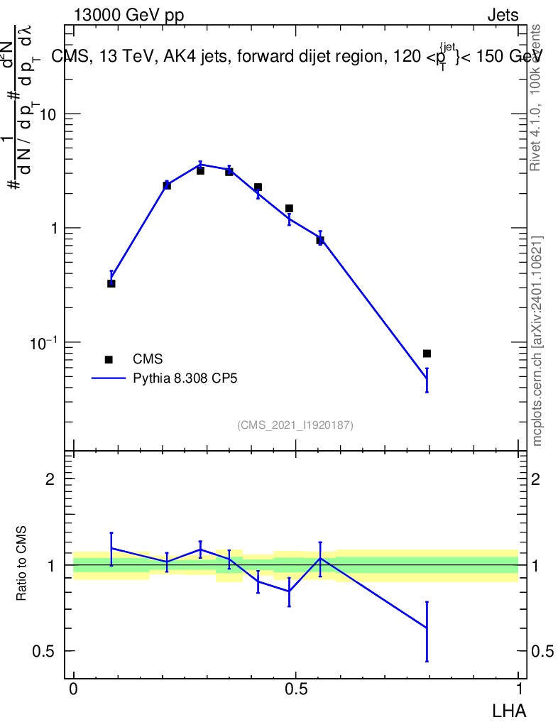 Lines: data, pythia8 8.308 CP5 |