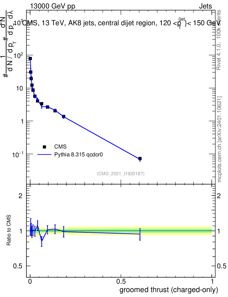 Lines: data, pythia8 8.315 qcdcr0 |