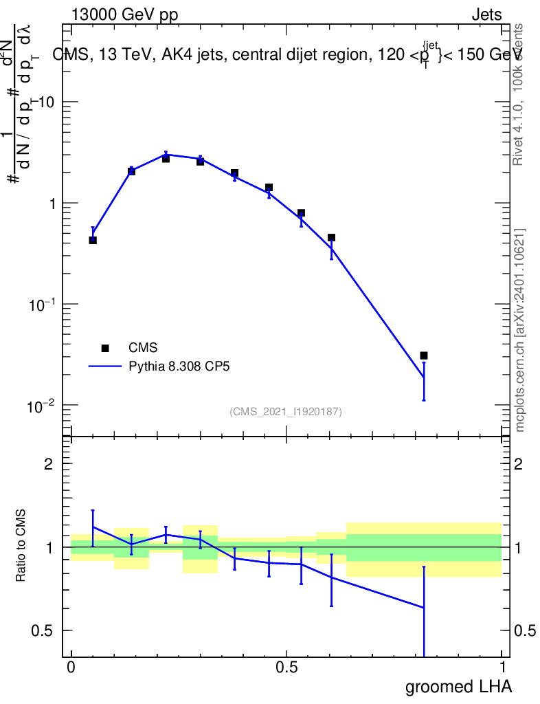 Lines: data, pythia8 8.308 CP5 |