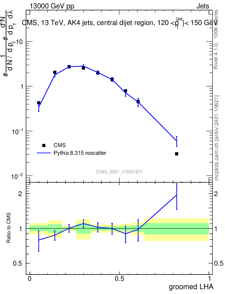 Lines: data, pythia8 8.315 rescatter |