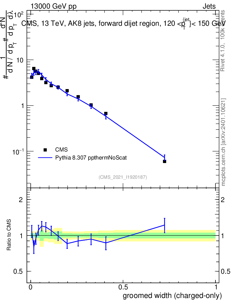 Lines: data, pythia8 8.307 ppthermNoScat |