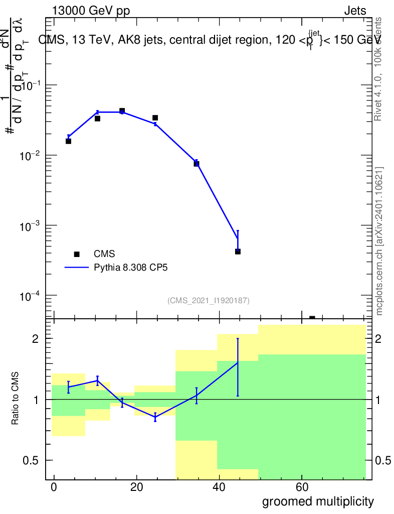 Lines: data, pythia8 8.308 CP5 |