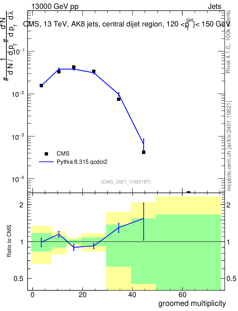 Lines: data, pythia8 8.315 qcdcr2 |