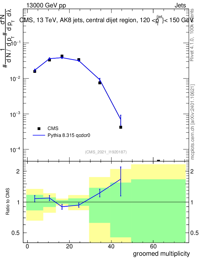 Lines: data, pythia8 8.315 qcdcr0 |