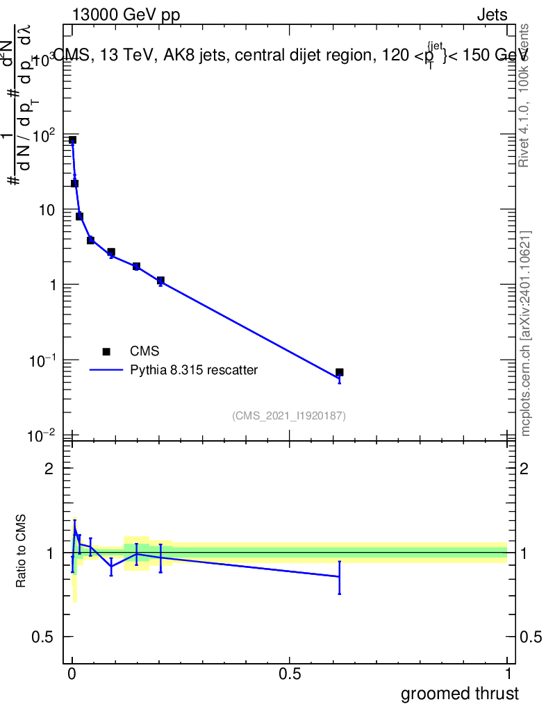 Lines: data, pythia8 8.315 rescatter |