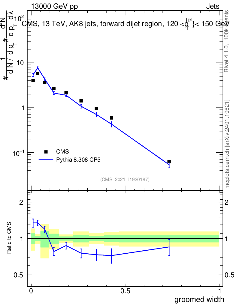 Lines: data, pythia8 8.308 CP5 |