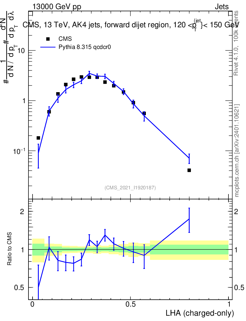 Lines: data, pythia8 8.315 qcdcr0 |