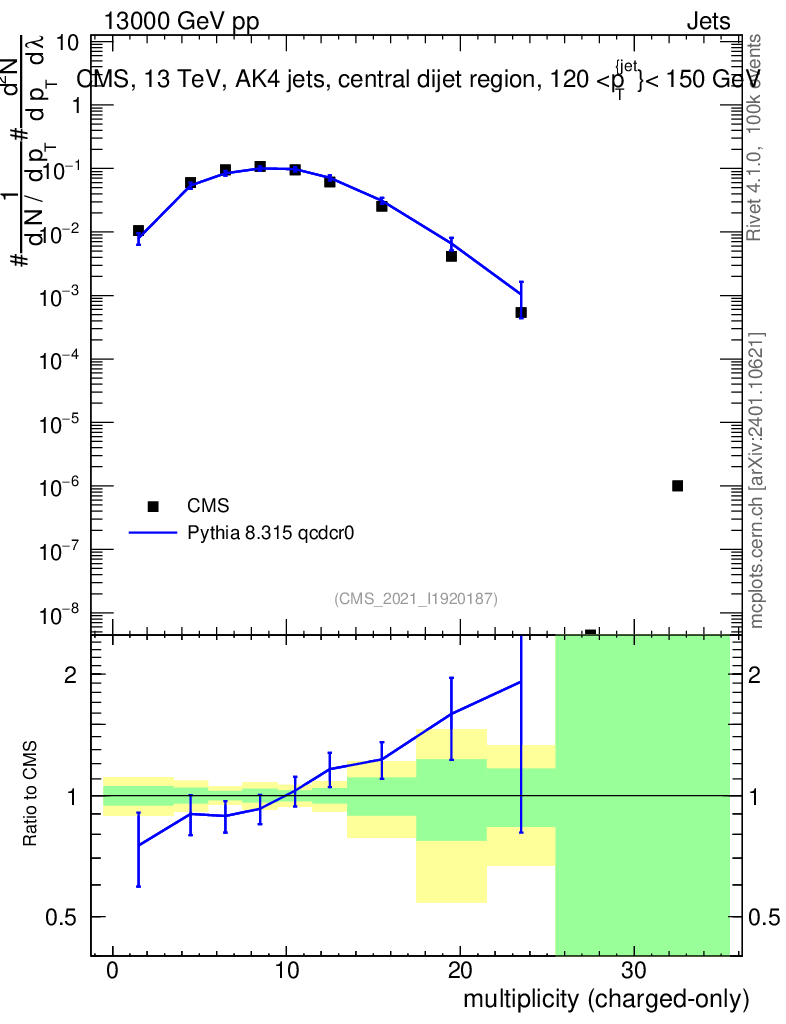Lines: data, pythia8 8.315 qcdcr0 |