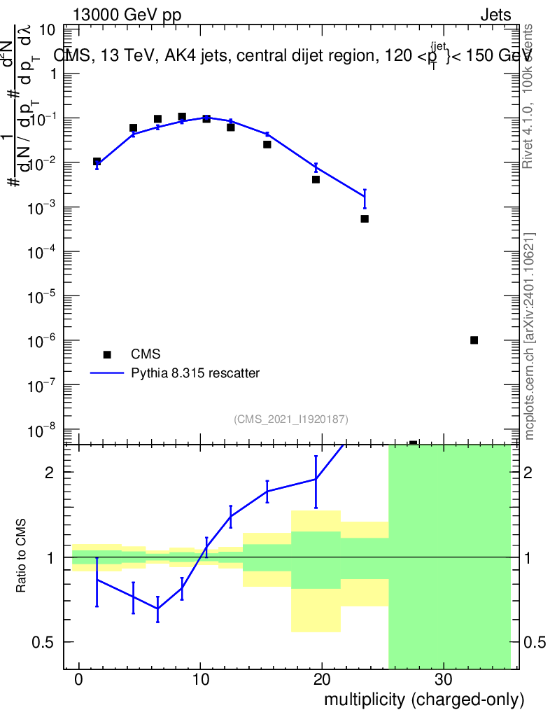 Lines: data, pythia8 8.315 rescatter |