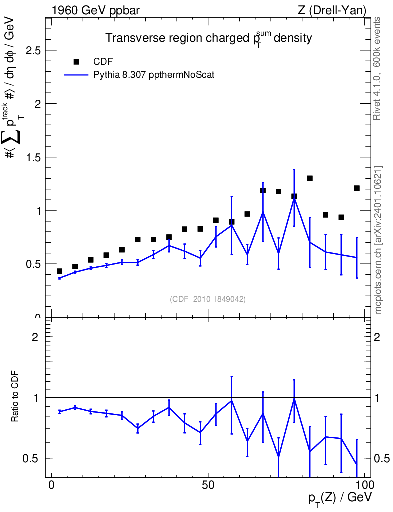 Lines: data, pythia8 8.307 ppthermNoScat |