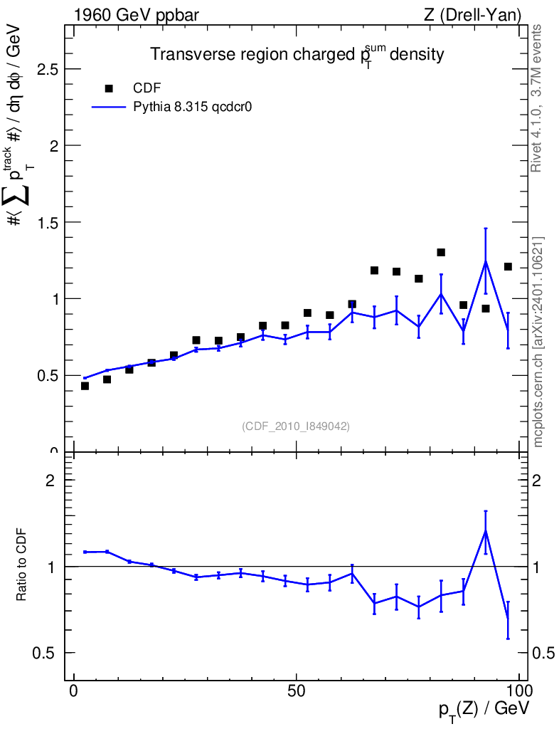 Lines: data, pythia8 8.315 qcdcr0 |