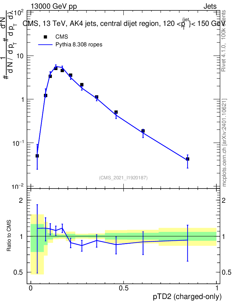 Lines: data, pythia8 8.308 ropes |