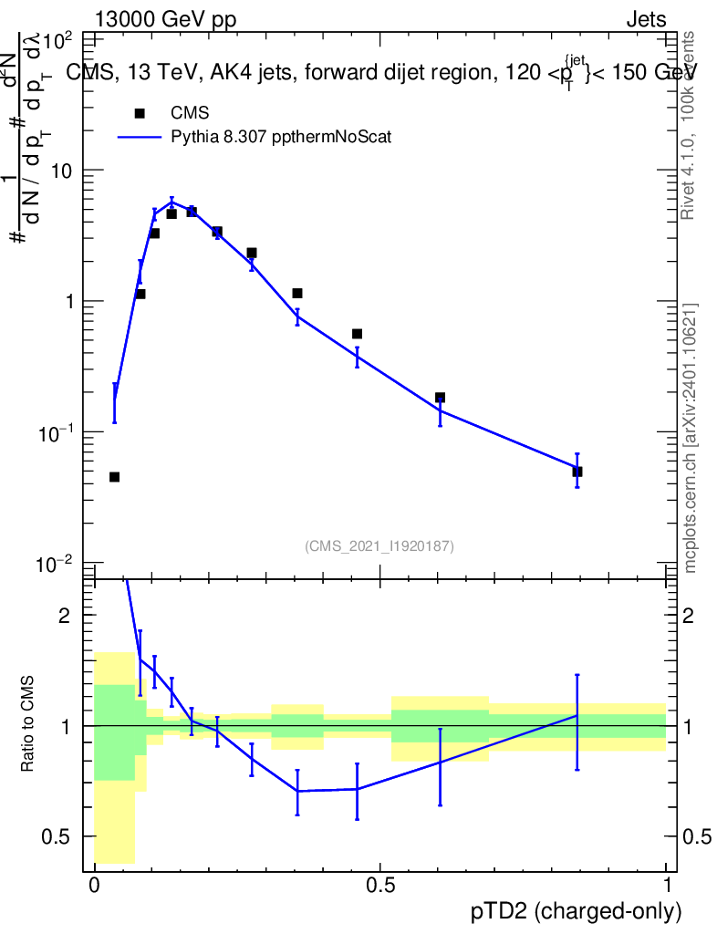 Lines: data, pythia8 8.307 ppthermNoScat |