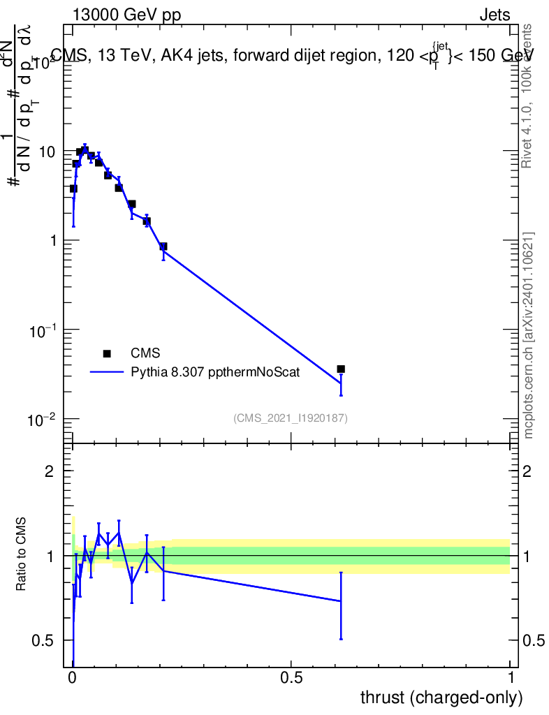 Lines: data, pythia8 8.307 ppthermNoScat |
