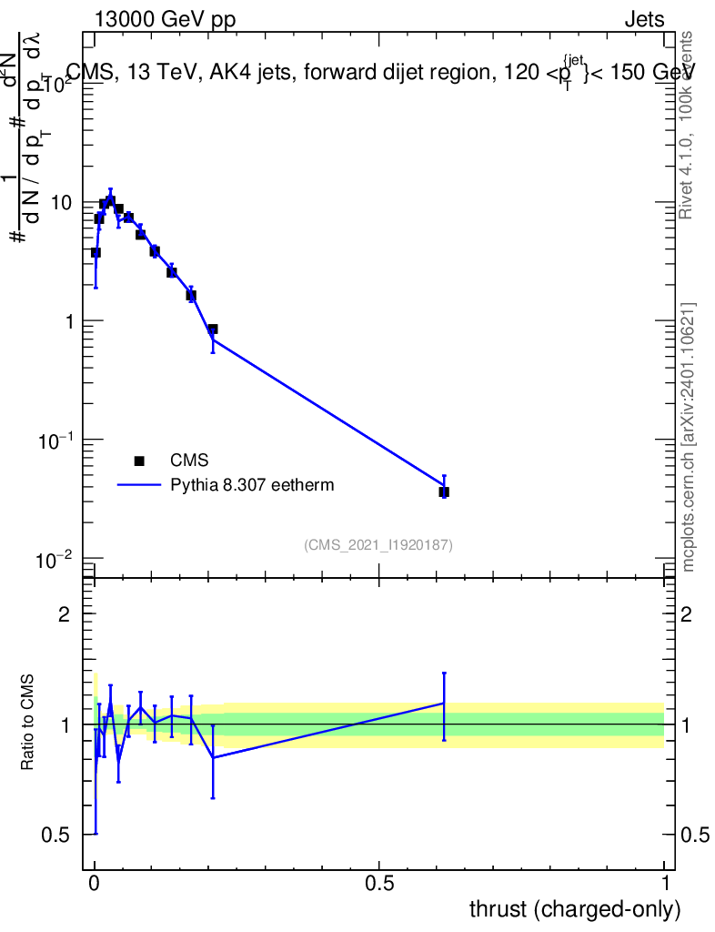 Lines: data, pythia8 8.307 eetherm |