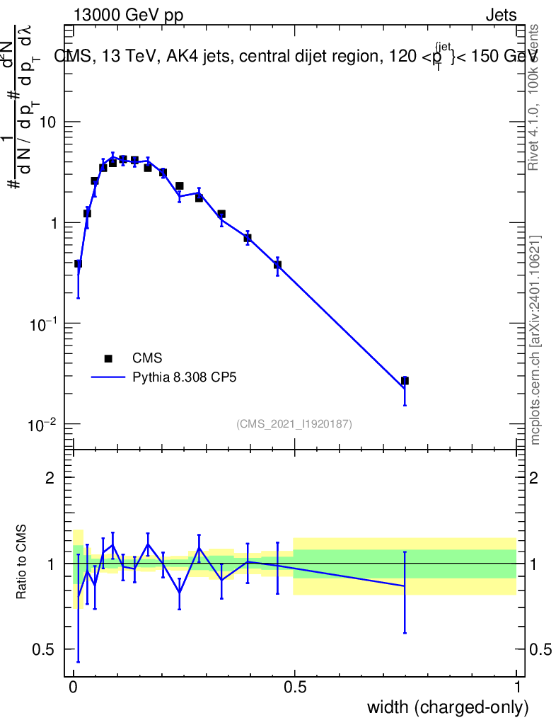 Lines: data, pythia8 8.308 CP5 |