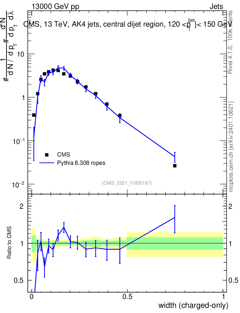 Lines: data, pythia8 8.308 ropes |