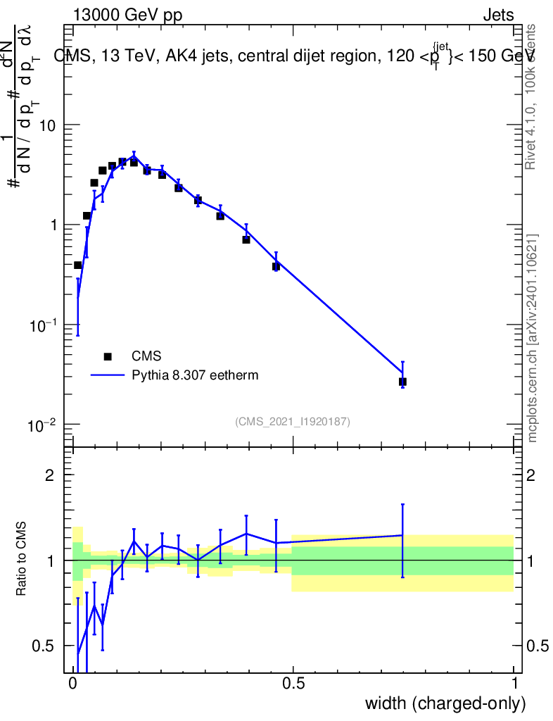 Lines: data, pythia8 8.307 eetherm |