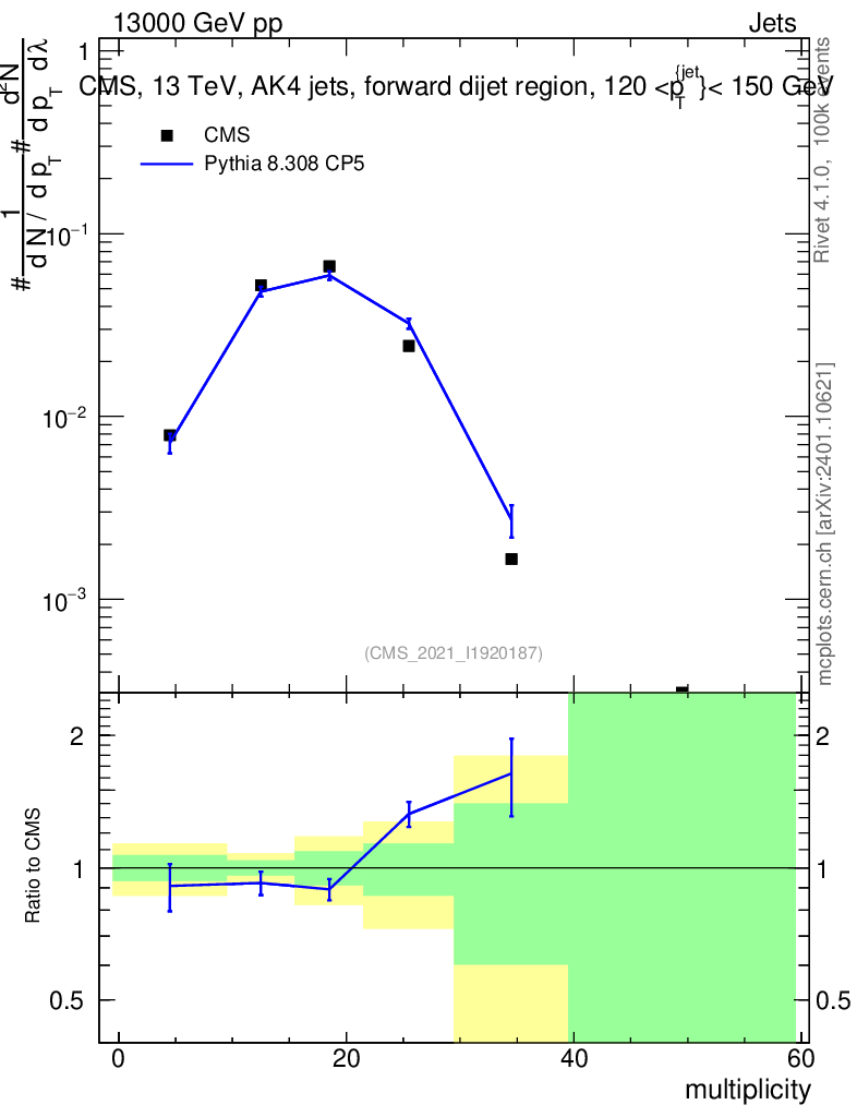 Lines: data, pythia8 8.308 CP5 |