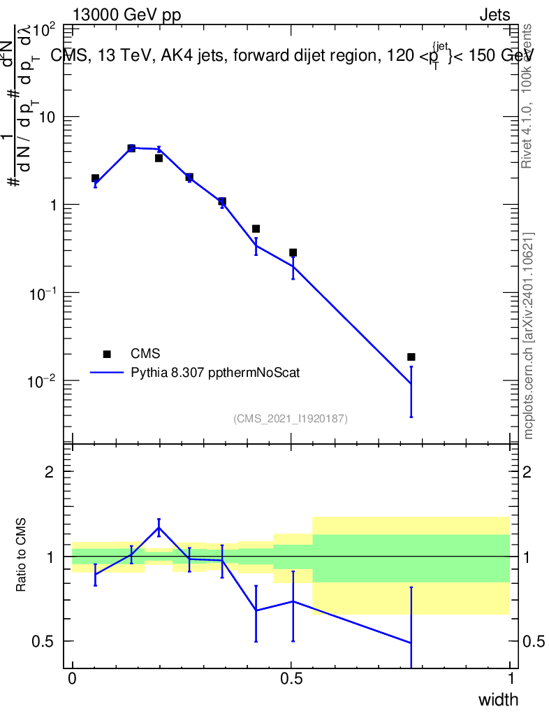 Lines: data, pythia8 8.307 ppthermNoScat |