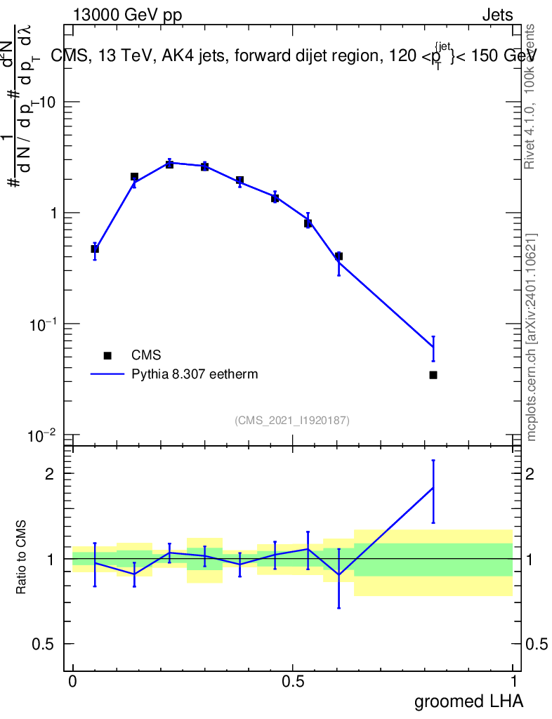 Lines: data, pythia8 8.307 eetherm |