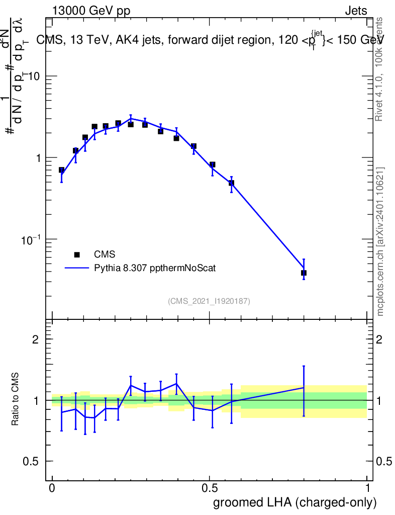 Lines: data, pythia8 8.307 ppthermNoScat |