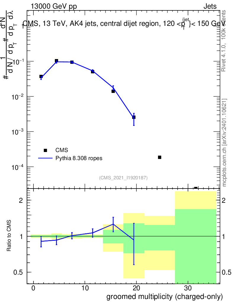 Lines: data, pythia8 8.308 ropes |