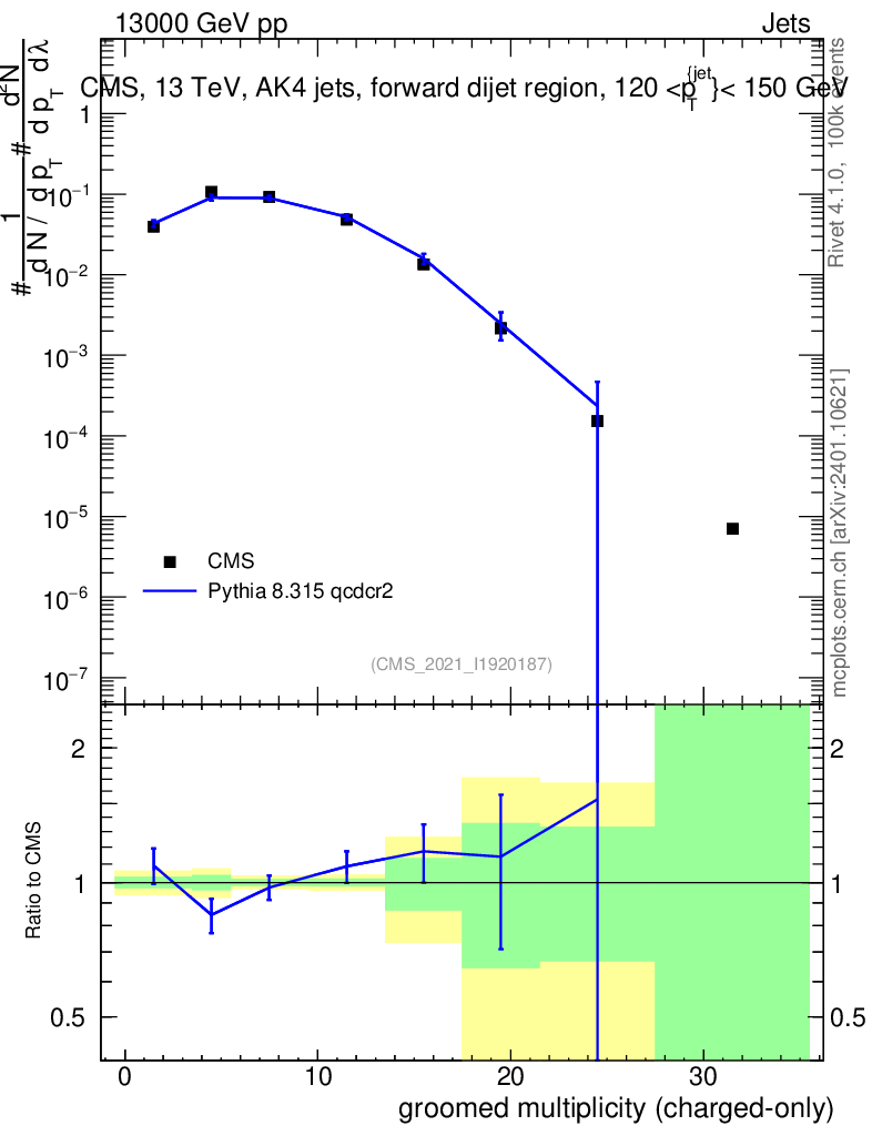 Lines: data, pythia8 8.315 qcdcr2 |