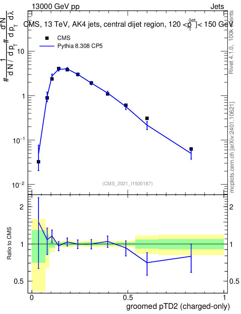 Lines: data, pythia8 8.308 CP5 |
