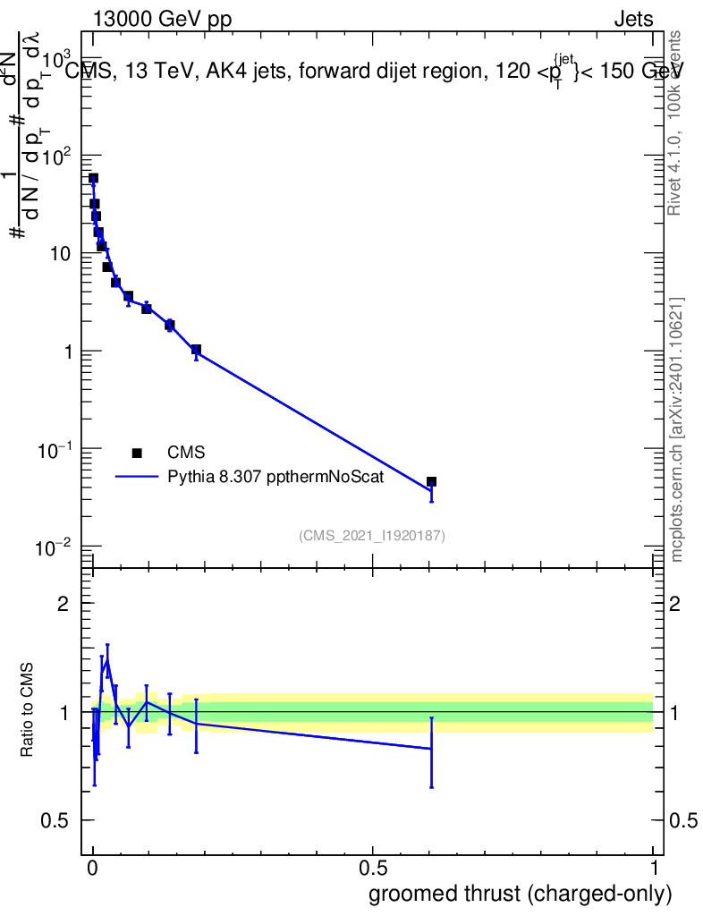 Lines: data, pythia8 8.307 ppthermNoScat |