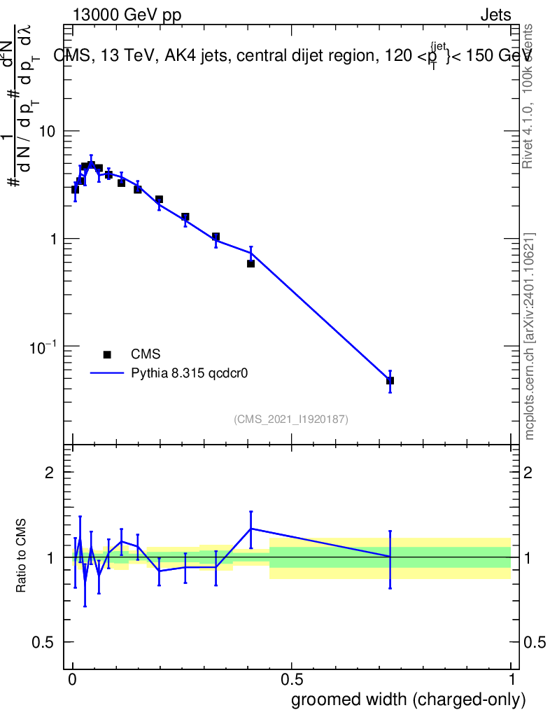 Lines: data, pythia8 8.315 qcdcr0 |
