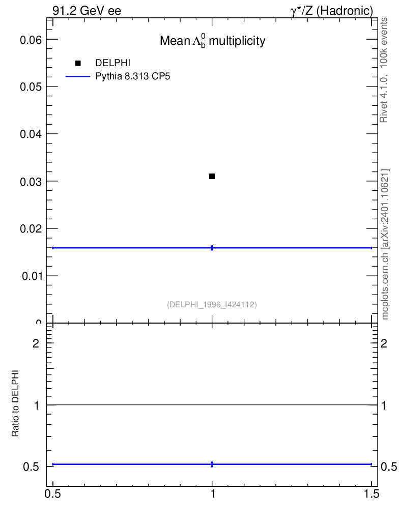 Plot of nLambdaB in 91.2 GeV ee collisions