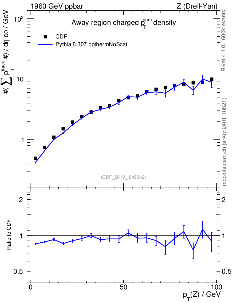 Lines: data, pythia8 8.307 ppthermNoScat |