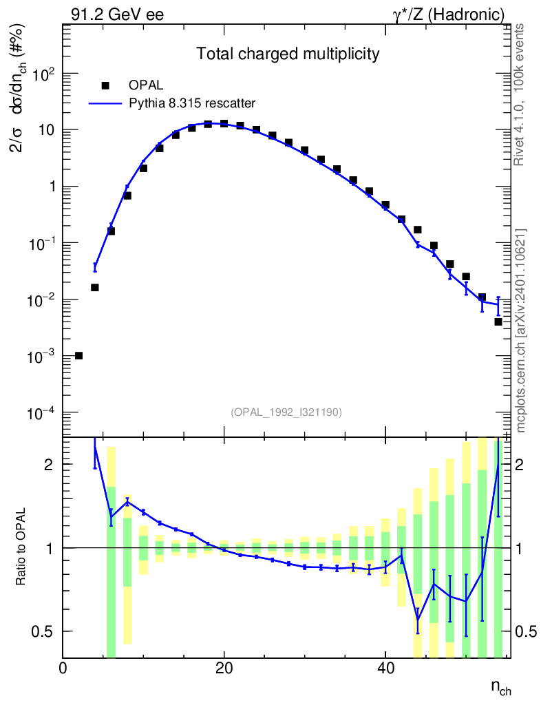 Lines: data, pythia8 8.315 rescatter |