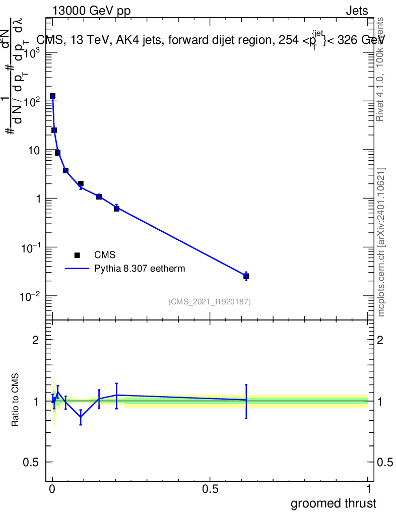 Lines: data, pythia8 8.307 eetherm |