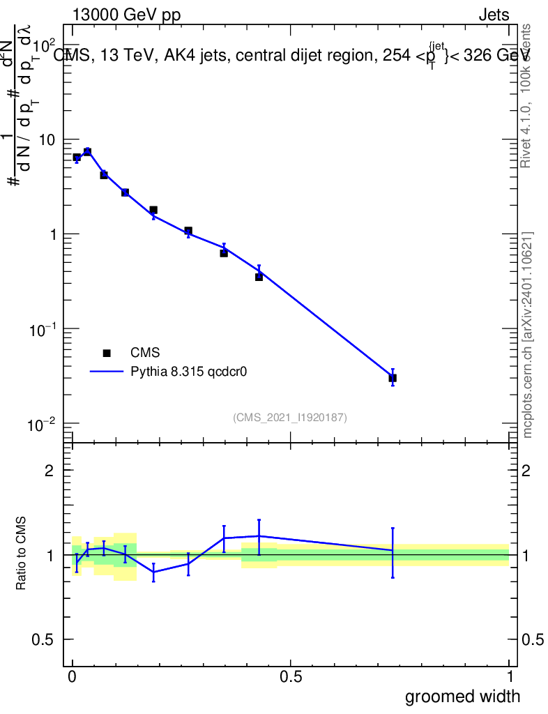 Lines: data, pythia8 8.315 qcdcr0 |