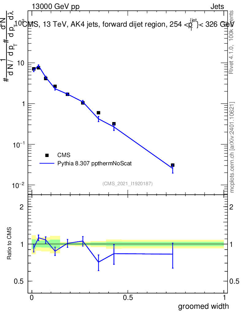 Lines: data, pythia8 8.307 ppthermNoScat |
