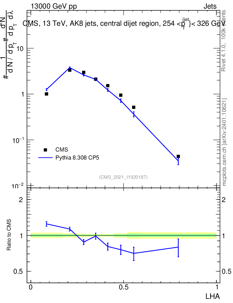 Lines: data, pythia8 8.308 CP5 |
